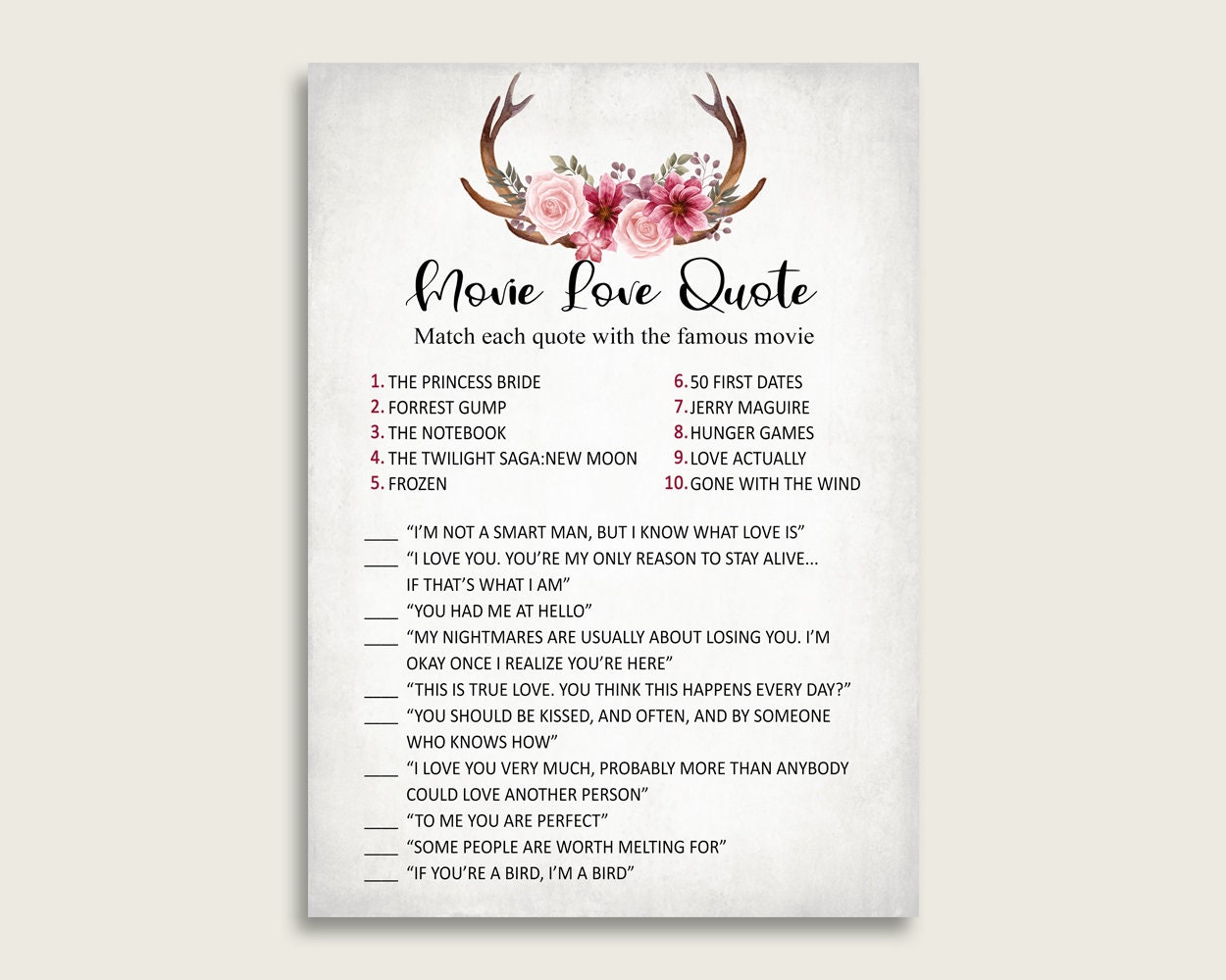 Deer Antlers Romantic Movie Love Quotes Match Game Pink Gray Etsy India